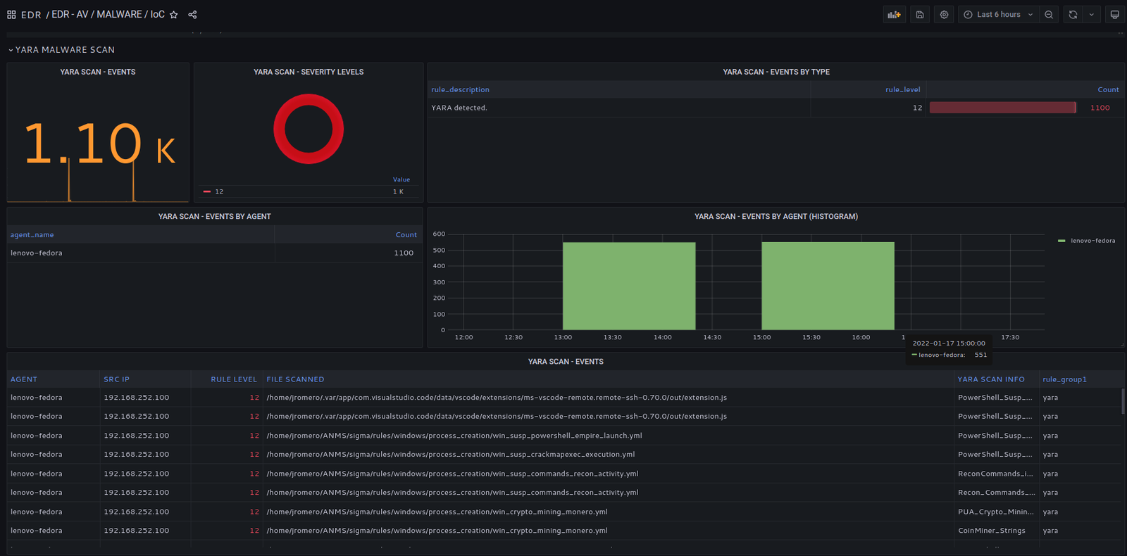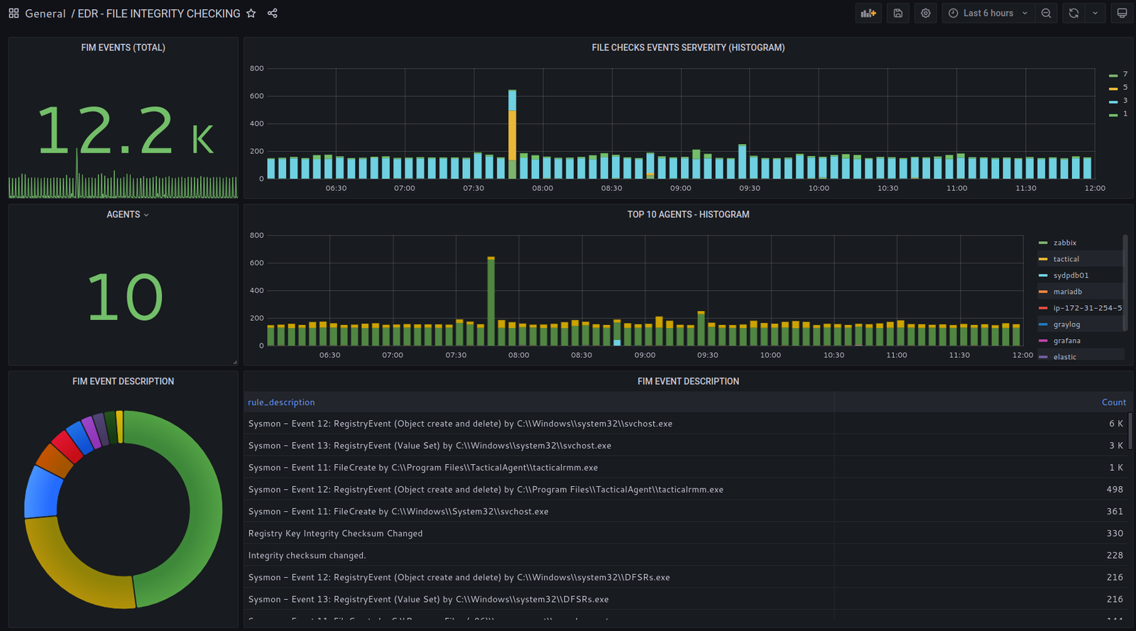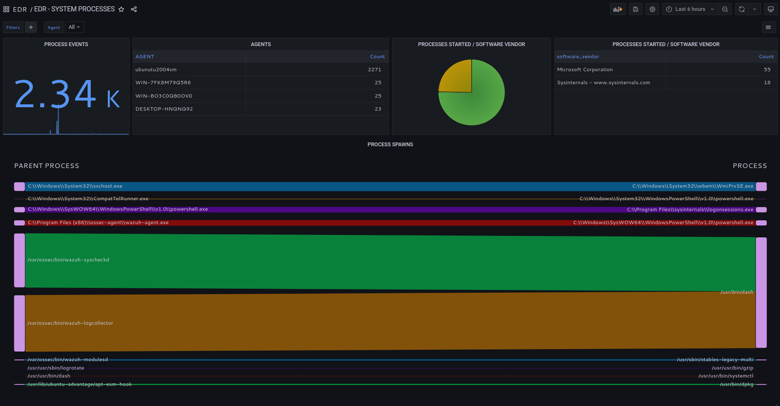 Chaque tableau de bord combine des résumés et des données agrégées pour donner une vue d’ensemble rapide des évènements et des règles de détection.