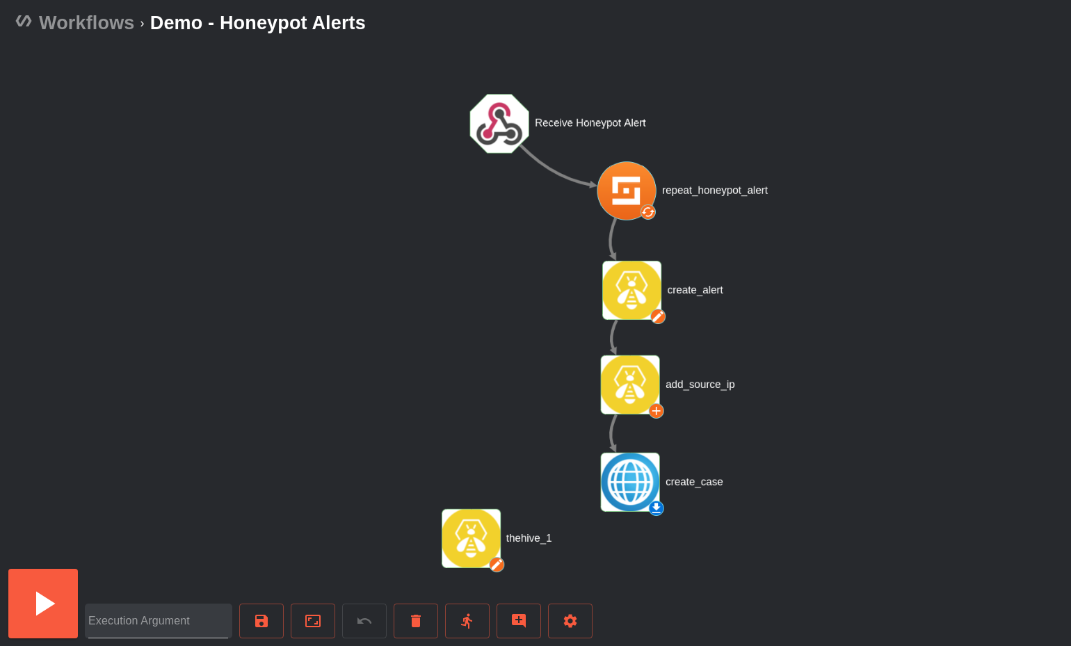 Des processeurs d’évènements et des pipelines sont utilisés pour créer des workflows pouvant interagir avec l’intelligence sur les menaces (threat intel) et la gestion des cas (case management).